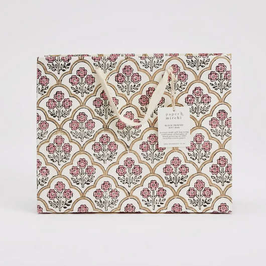Hand Block Printed Gift Bag - Pink Earth Collection - Variety of Styles (Medium)
