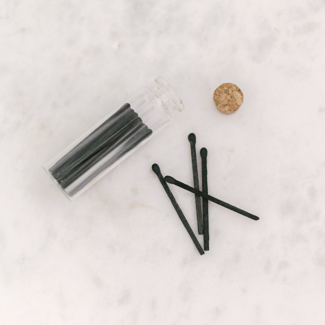 These handmade black-trip matches are perfect companions to your favorite candles!