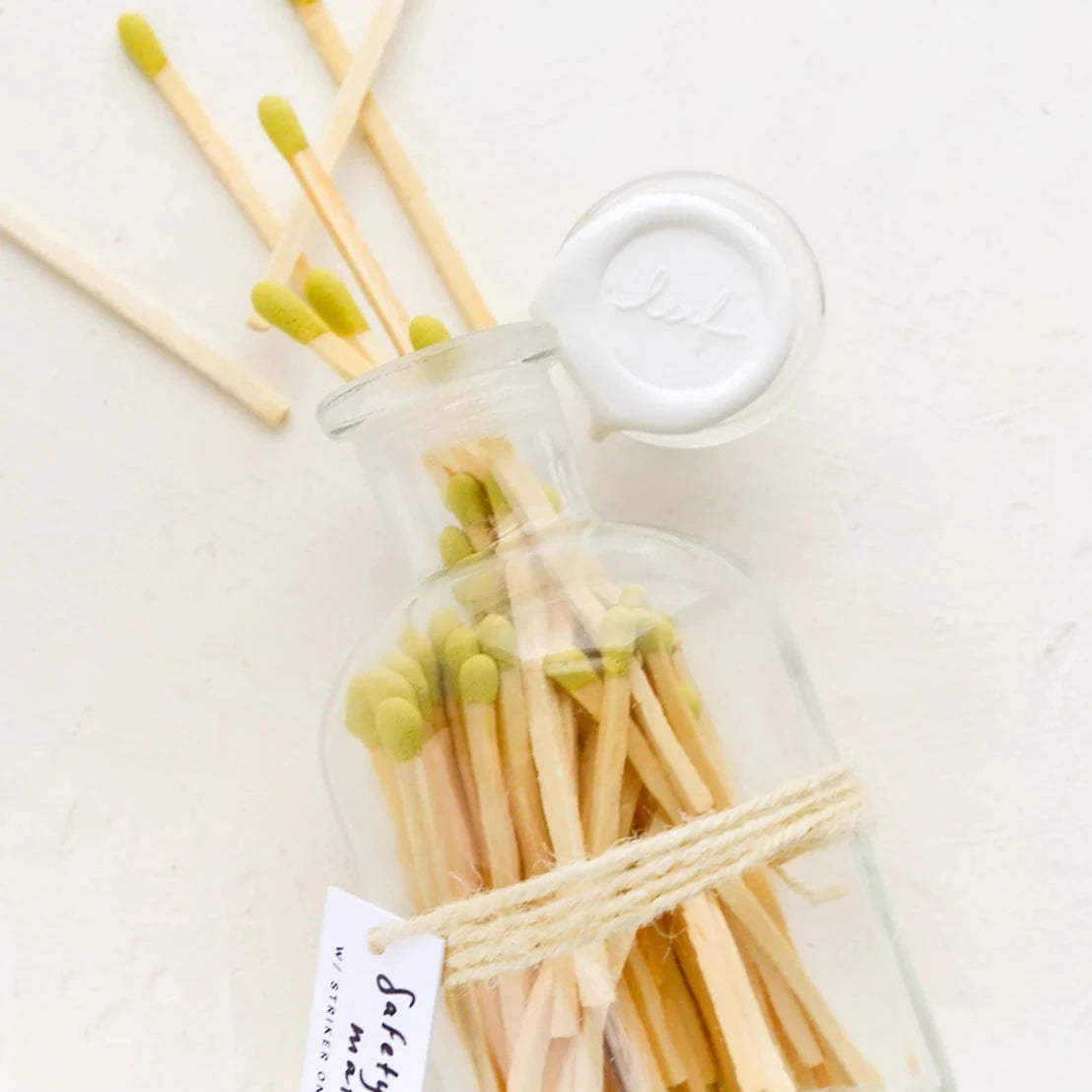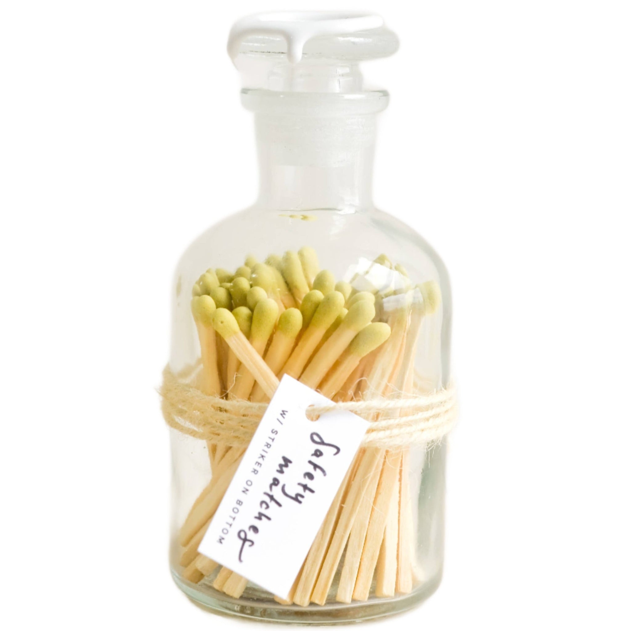 Packaged in a reusable, plastic-free glass apothecary jar (perfect for storing tea, spices, or homemade body oil or bath salts afterwards), these safety matches feature colored tips in exclusive hues and a concealed striker sticker on the bottom of the jar.