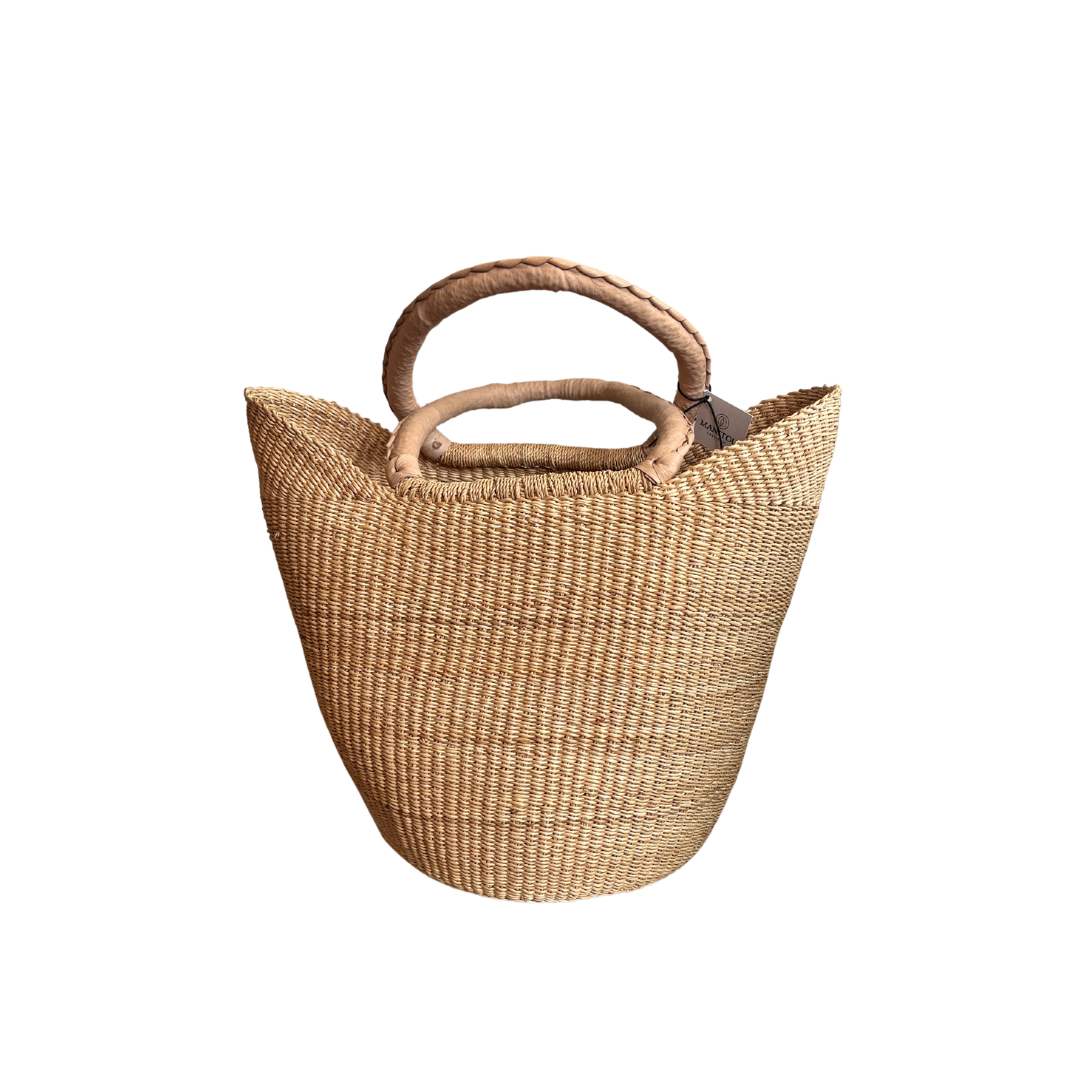 *** Each basket is handcrafted using dried elephant grass by local artisans. Due to its handmade nature, variation in size and color should be expected. *** Shape: Round in shape and finished off with a thick rim, and a pair of handles about 8 to 9 inches tall and 6 to 8 inches wide apart for easy handling during shopping. The beautiful piece is 14-16 inches across and 10 inches tall/deep