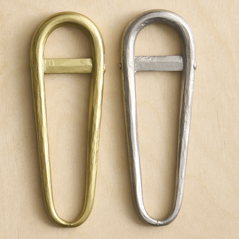 These snowshoe-shaped bottle openers are mightier than they appear. Heavy gauge Stainless Steel wire is hammered, then given a brass or pewter finish that works with any decor. The low-profile, recurving design allows them to be hung from a hook or keychain for frequent use.