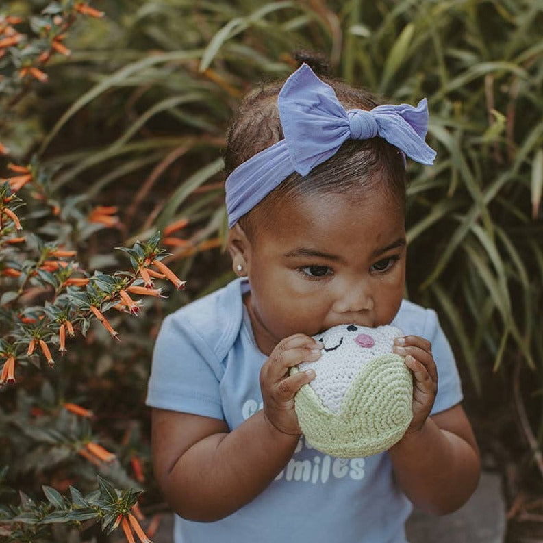It's never too early to introduce healthy eating and a love for vegetables! This happy cauliflower stuffed toy is handmade with soft cotton yarn and is perfect for small hands to grab and shake.