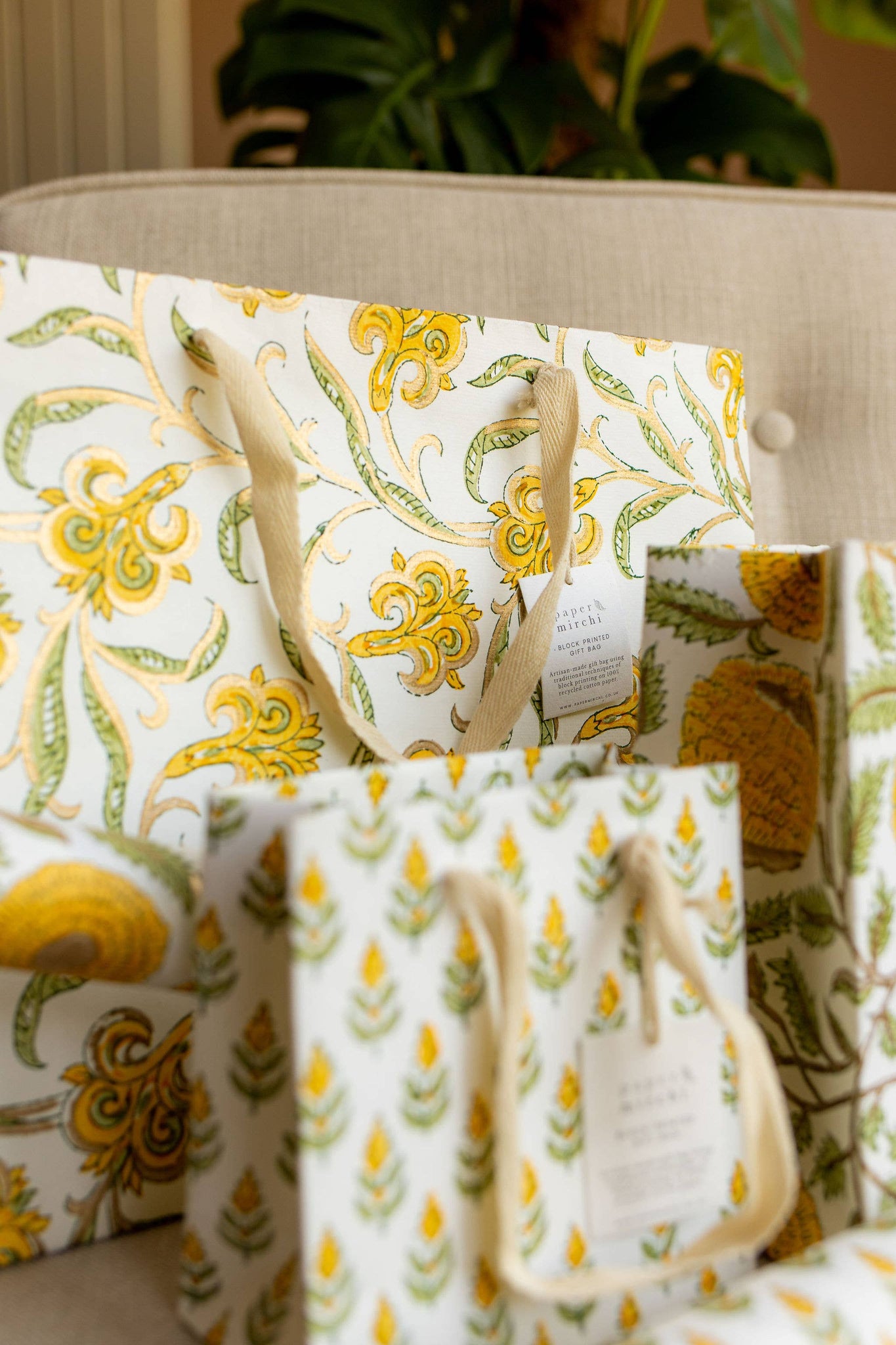Hand Block Printed Gift Bag - Sunshine Collection - Variety of Styles (Large)