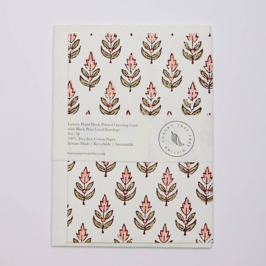 Hand Block Printed Greeting Card (in Buti Coral)