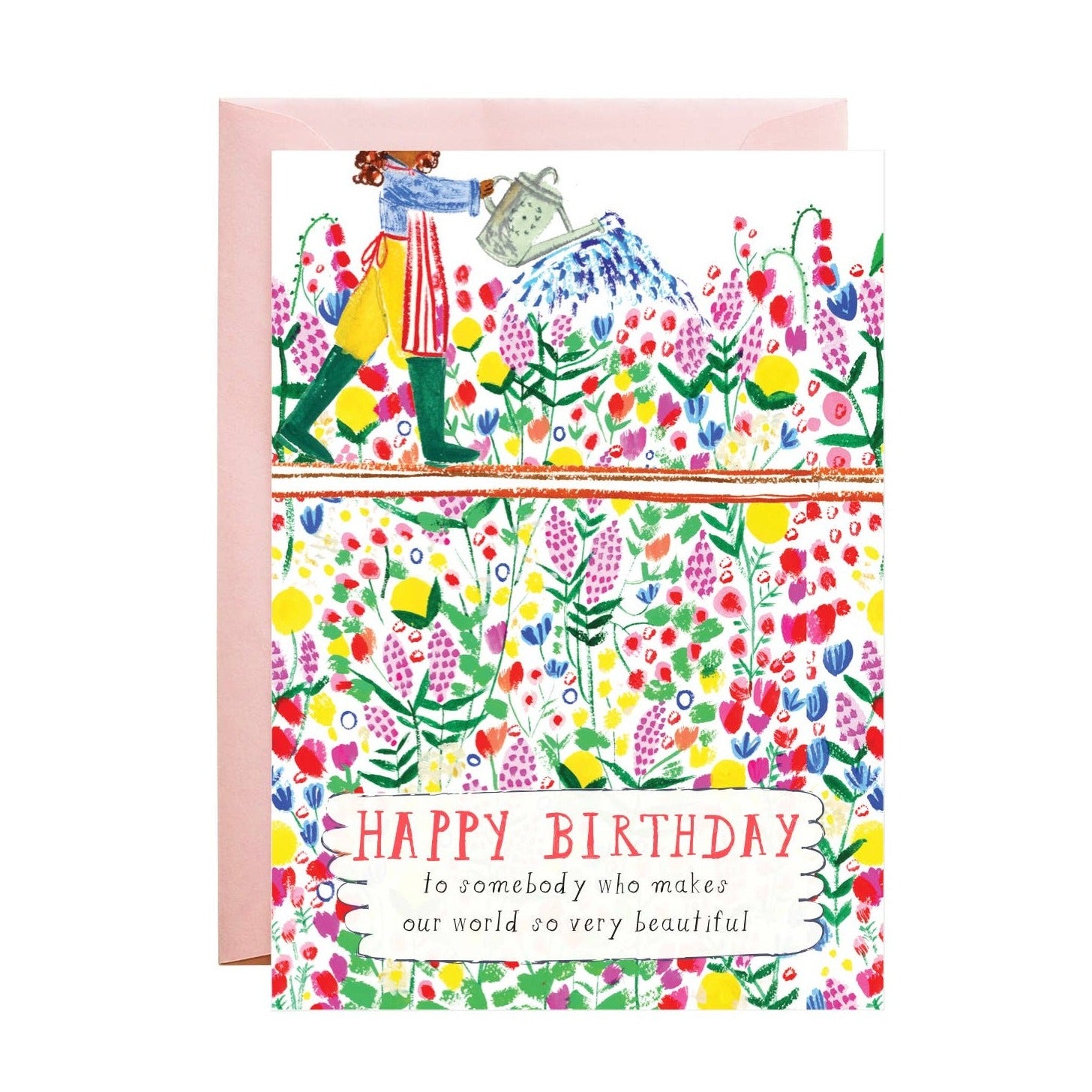 'Happy Birthday to Somebody Who Makes Our World So Very Beautiful' Garden Flowers Card