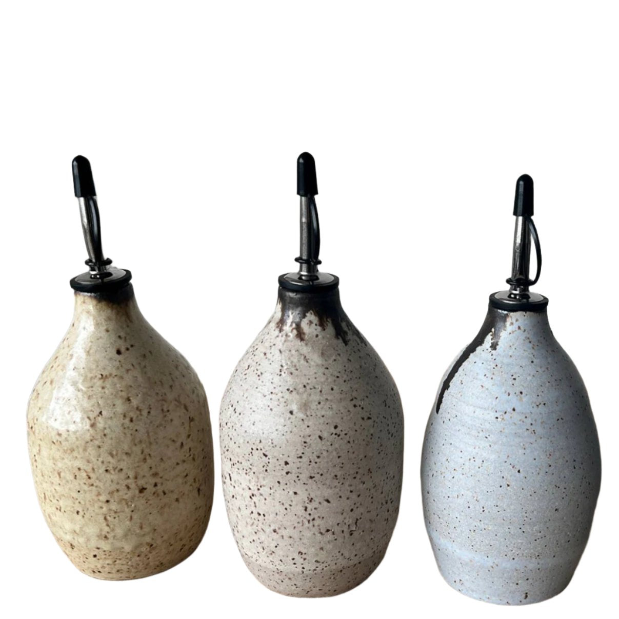 Beautiful, handmade oil cruet. These comfortably fit in your hand and hold 2 cups of oil or vinegar. Each one is hand thrown and will vary.