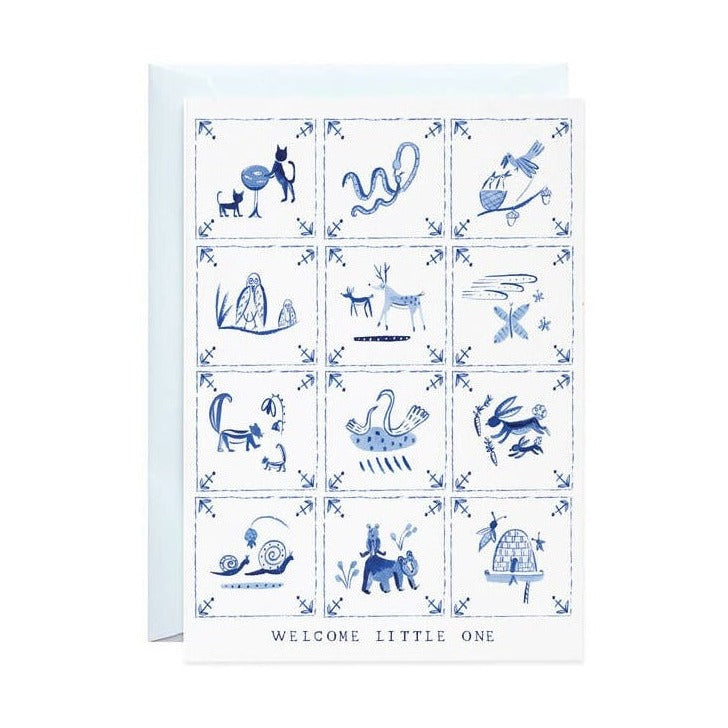 'Welcome Little One' New Baby Delft Tiles - Greeting Card