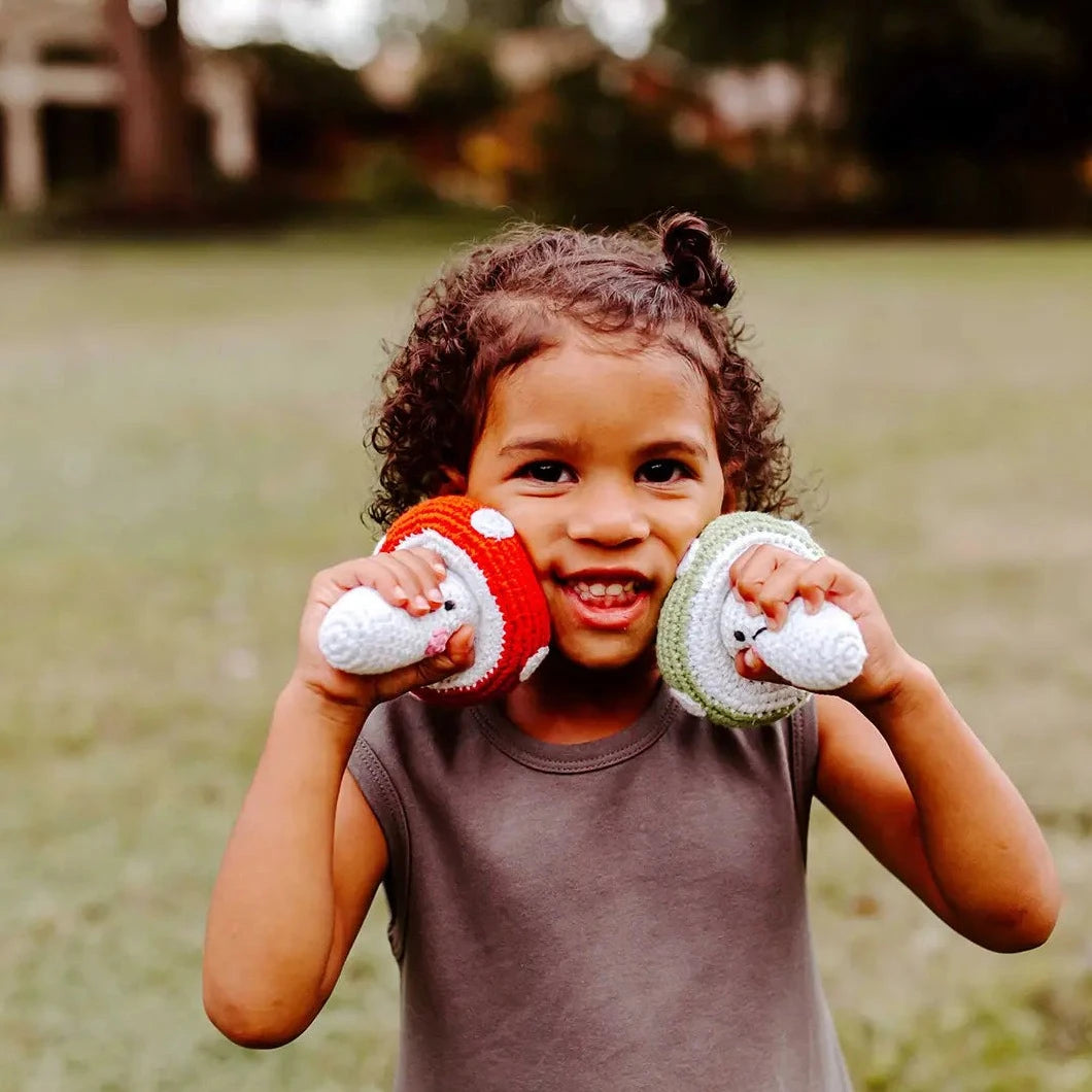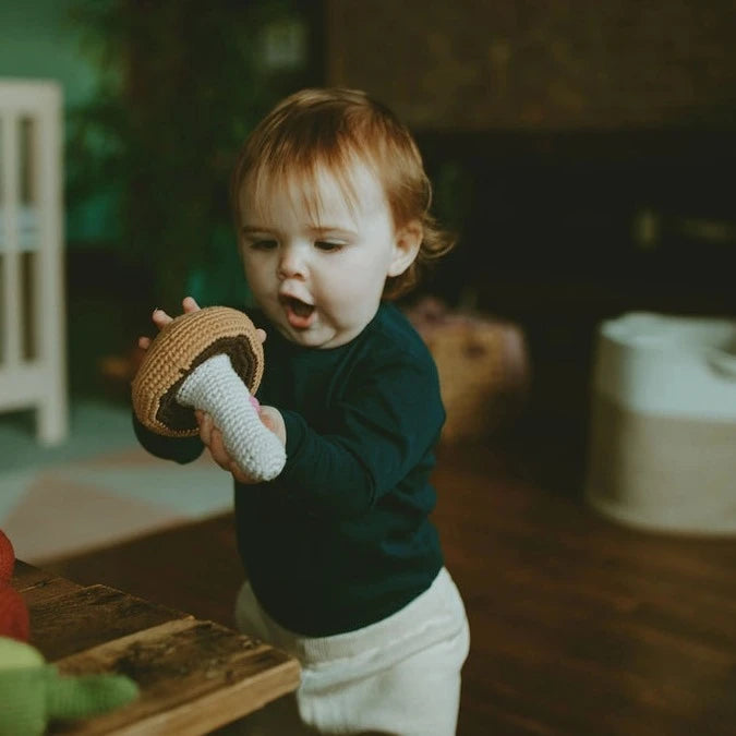 The rattle inside has a very gentle sound when shaken. Perfect for hours of pretend play, this mushroom toy is bound to be your child's favorite first vegetable.