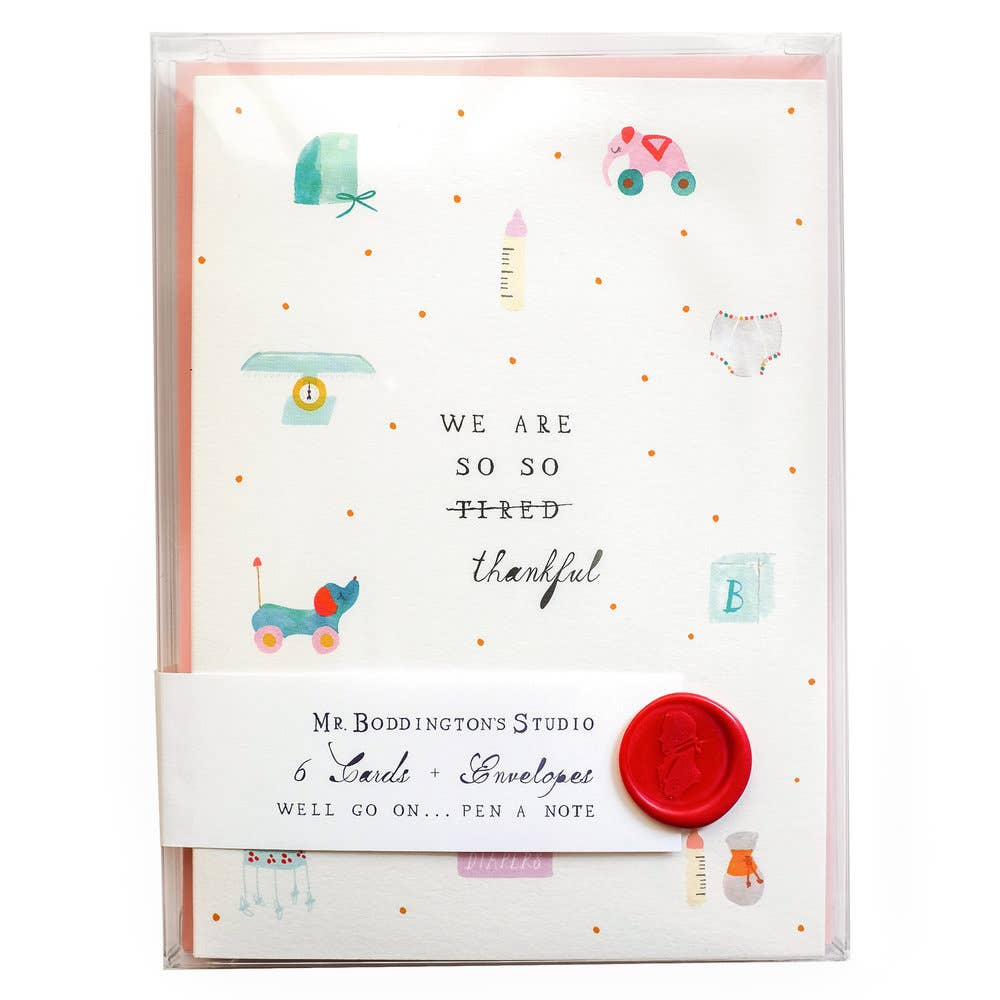 Often with his pup nearby, Mr. Boddington illustrates from his studio in Brooklyn. This is a boxed set of 6 folded cards and envelopes. Cards measure 4.5" x 6.25" are flat matte printed in brilliant hues and blank on the inside. Well go on, do pen a note!
