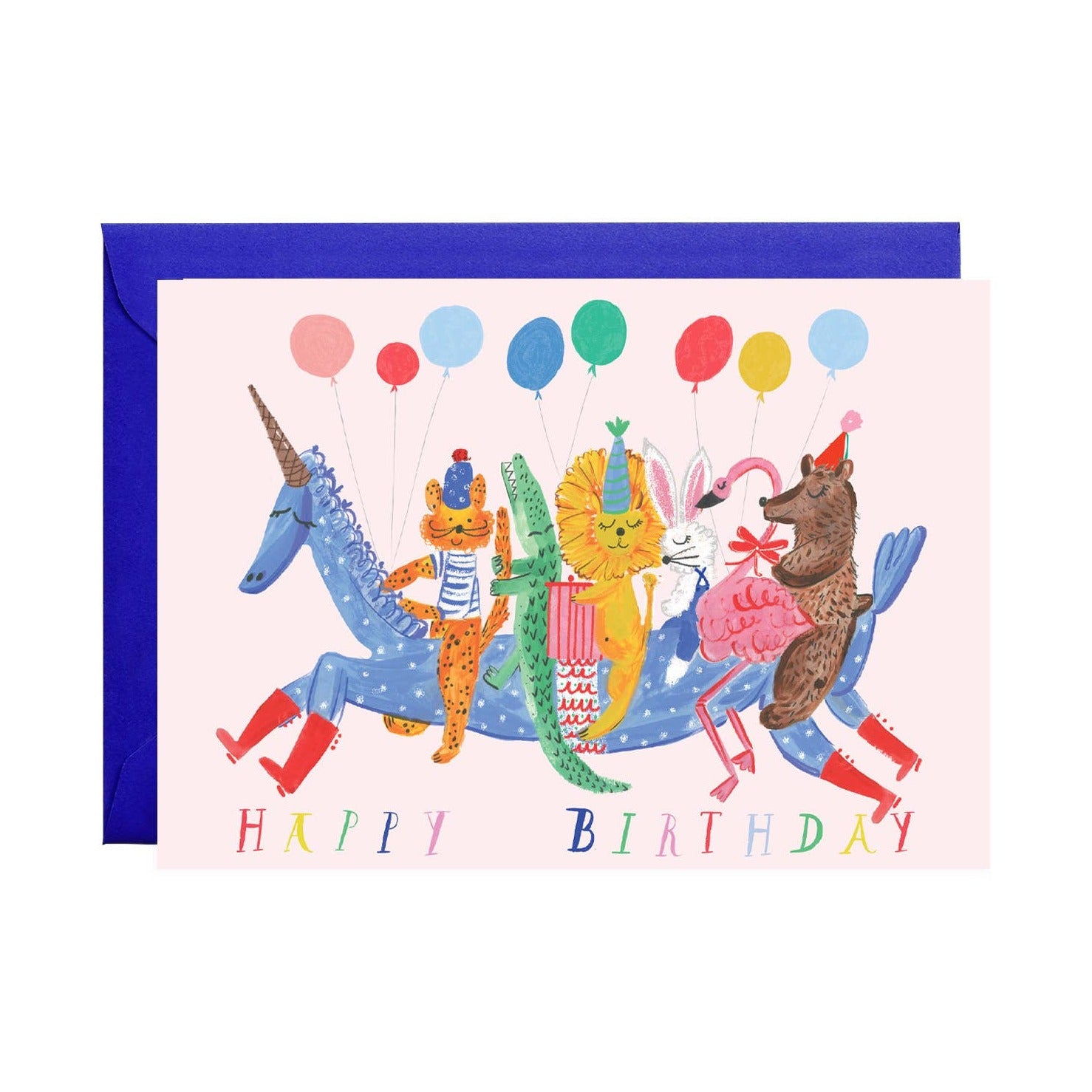 'Happy Birthday' Unicorn Balloons - Greeting Card