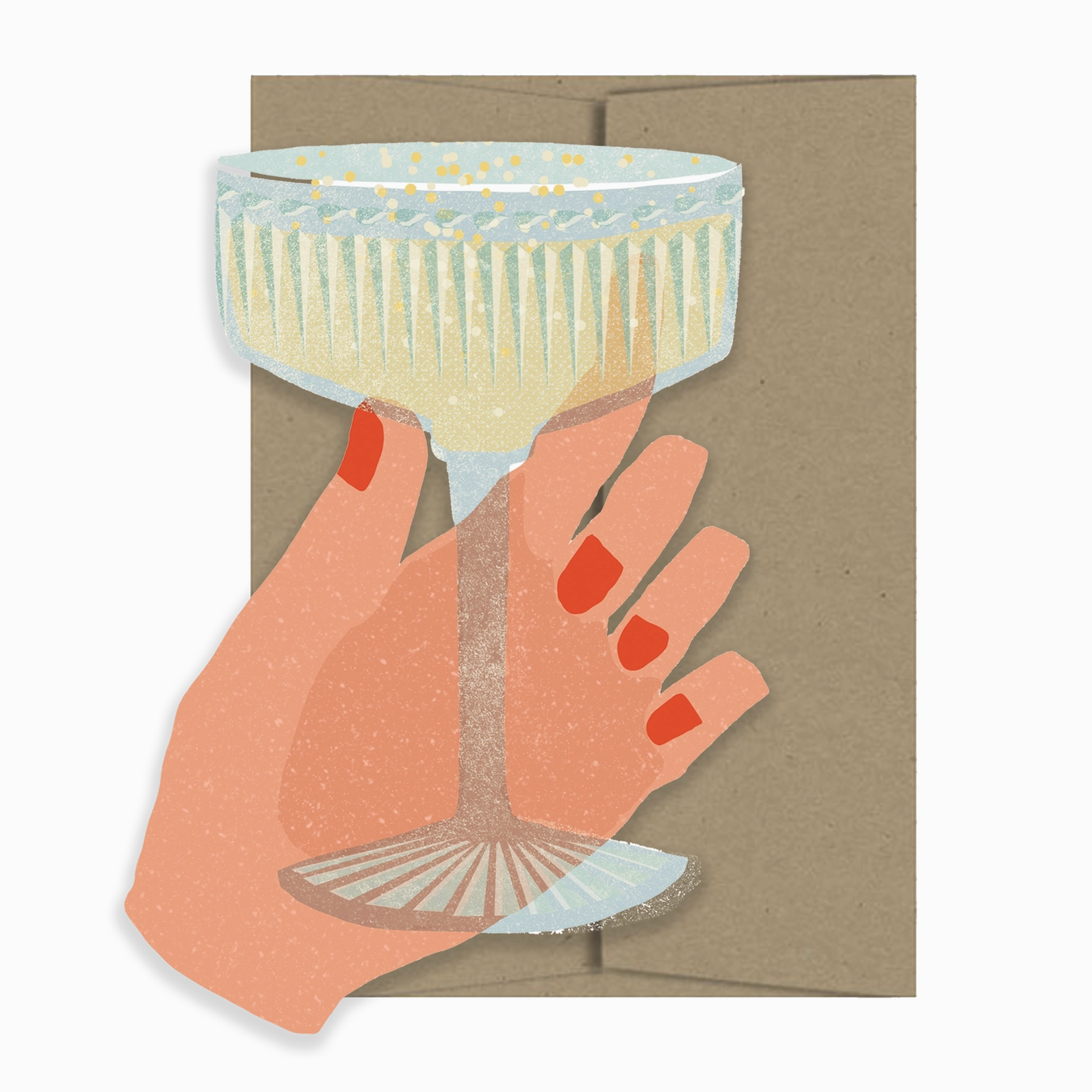 Chin-Chin! Celebrate with a coupe of champagne. A vintage card perfect to send congratulations.