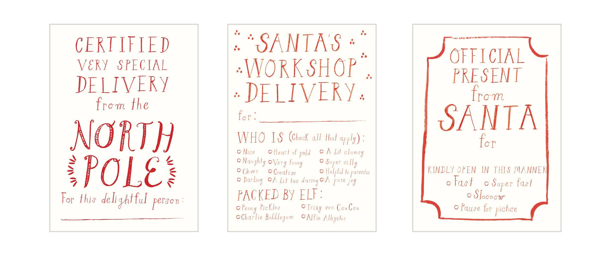 Darling, a package from the North Pole is under the tree for you! These tags will make Christmas morning a giddy delight. Hand-illustrated, printed and packaged in New York City. Each set include six totally unique tags, punched in corner (for a string). 3.5 x 5 inches, 2-sided.